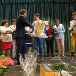 A las 13:30 horas tuvo lugar la entrega de premios. La ganadora fue obsequiada con 100 euros y la segunda clasificada con 50 euros. Además, la ganadora de la pasada edición mostró a todo el público su trabajo finalizado.