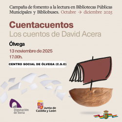 El jueves 13 de noviembre a partir de las 17:00 horas en el Centro Social tendrá lugar un Cuentacuentos titulado "Los cuentos de David Acera".