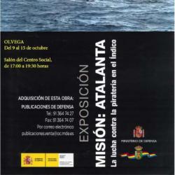 Del 9 al 15 de octubre, en horario de 17:00 a 19:30 horas en el centro social de nuestra localidad, tendrá lugar la exposición Misión: Atalanta, la lucha contra la piratería en el Índico, organizada por el Ministerio de Defensa y el Ayuntamiento de Ólvega.