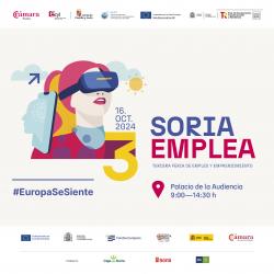 El 16 de octubre se celebra la tercera edición de la Feria de Empleo y Emprendimiento de Soria. Se celebrará en el Palacio de la Audiencia en horario de 9:00 a 14:30 horas. Galería de Imágenes Comparte esta Página