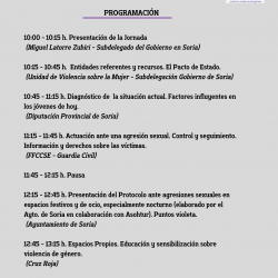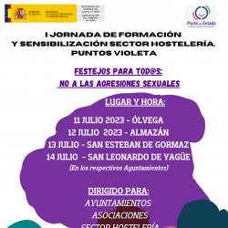 El 11 de julio tendrá lugar una jornada de formación y sensibilización para el sector de la hostelería contra las agresiones sexuales, en la cual participarán figuras claves dentro de la Subdelegación del Gobierno en Soria, Diputación Provincial de Soria, Guardia Civil, Ayuntamiento de Soria y Cruz Roja.