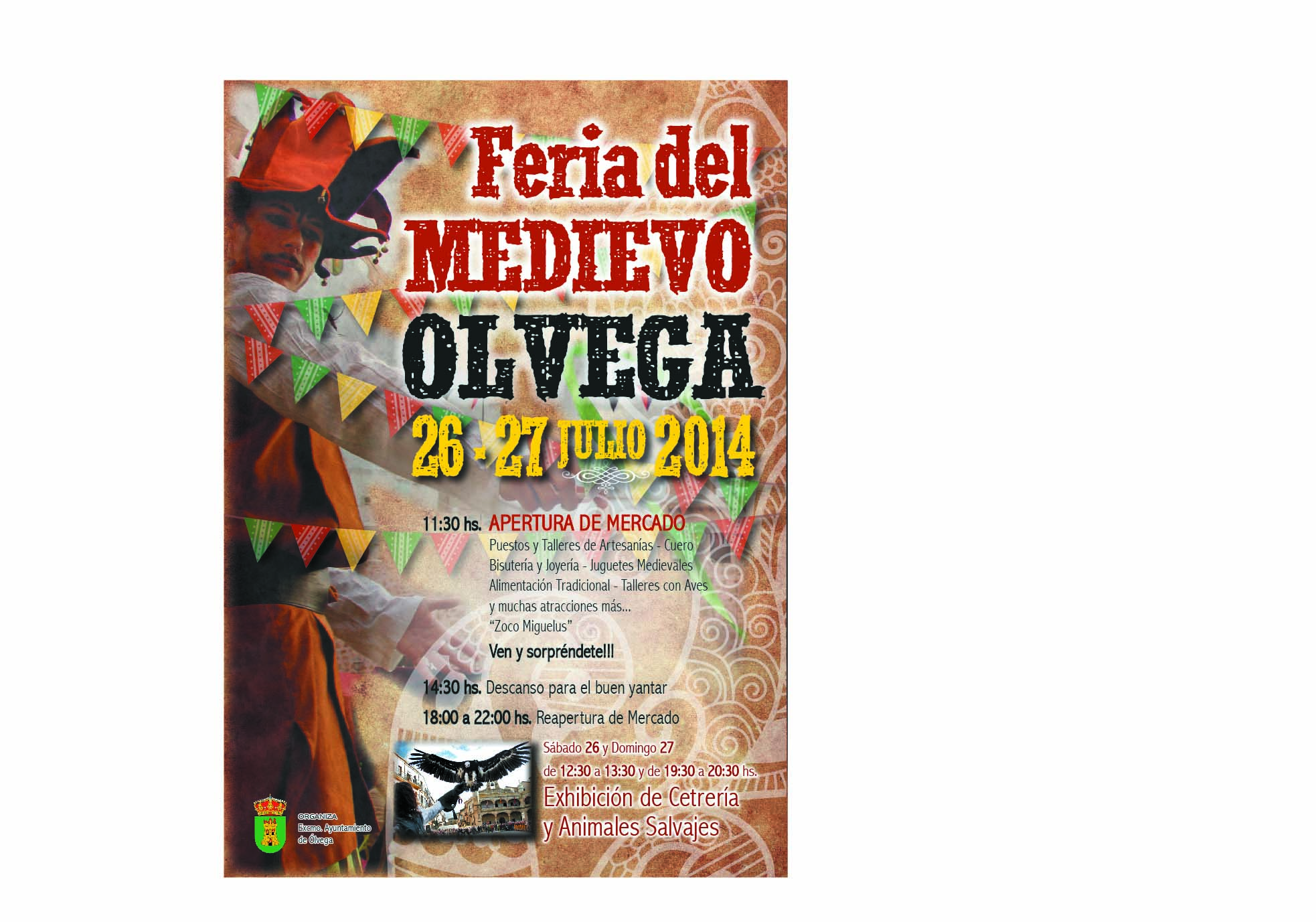 Ólvega prepara su tradiconal MERCADO MEDIEVAL, que se celebrará los días 25 y 27 de Julio. Interesados en participar inscribirse en el Ayuntamiento hasta el 18 de Julio Ólvega 2014 Descargas MERCADO MEDIEVAL 2014 (349.13 KB) Galería de Imágenes Comparte esta Página