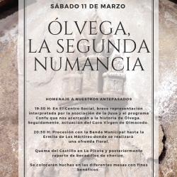 El sábado 11 de marzo se celebra en nuestra localidad el acto "Ólvega, la segunda Numancia", un homenaje que nuestro pueblo rinde a nuestros antepasados con diversas actuaciones.