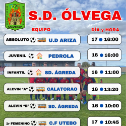A continuación les adjuntamos los partidos que la S. D. Ólvega disputará durante este fin de semana.