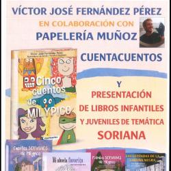 El jueves 23 de abril a partir de las 11:30 en el Centro Social, el escritor Víctor José Fernández Pérez en colaboración con la Papelería Muñoz, presentará una serie de libros infantiles y juveniles con temática soriana.