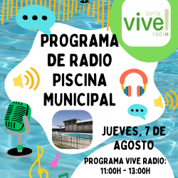 Este jueves 7 de agosto el programa Vive Radio se retransmitirá en directo desde las piscinas municipales a partir de las 11 de la mañana, dando voz a diferentes colectivos de la localidad.