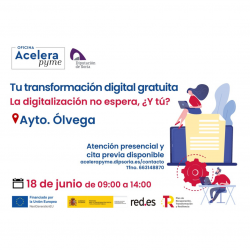 Te recordamos que el Ayuntamiento de Ólvega alberga una de las sedes del Hub Rural Acelerapyme Soria, impulsado por la Diputación de Soria. El martes 18 de junio estaremos a tu disposición en la localidad, y en el propio Consistorio, de 9 a 14 horas. Adelántate y reserva tu plaza, pídenos tu cita previa.