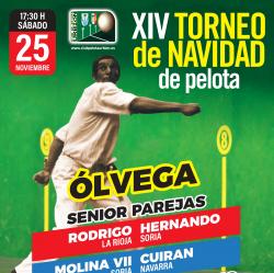 El sábado 25 de noviembre a partir de las 17:30 horas comenzará la 14ª edición del Torneo de Navidad de pelota, con la presencia de dos partidos: uno de parejas senior y otro senior de cuatro y medio. La entrada será gratuita. Galería de Imágenes Comparte esta Página