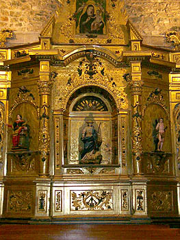 El retablo es de traza barroca, del siglo XVIII, con buen dorado. Es más monumental que artístico. Su estructura está construida por dos columnas adelantadas que forman el cuerpo central, más saliente que el resto; y los otros dos cuerpos de los lados en talud, que en amplio derrame van morir al fondo del muro.