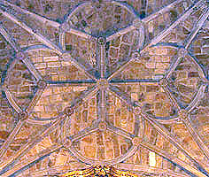 La bóveda del presbiterio se acomoda a su planta pentagonal. De cada ángulo del polígono y de la clave del arco fajón salen terceletes que se juntan de nuevo con sus diagonales por medio de otros rómbicos y que, a través del circular, llegan a la clave mayor. La ornamentación de las claves es de estrellas de ocho puntas y de rosas.