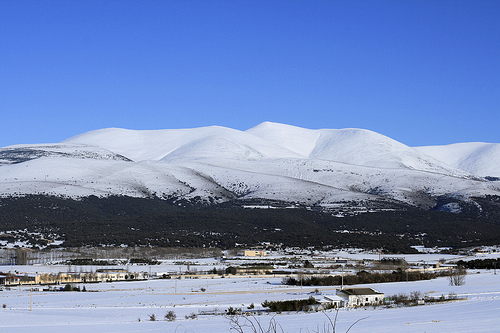 Si iniciamos un breve descenso nos encontramos con la Sierra del Madero, cadena de sierras y montañas que enmarcan en redondo la llanura de Ólvega, tanto por su sus formas de serrucho como por su color verde oscuro, que destaca sobre el cielo y los campos marrones. Este verdor viene de los robledales y encinares que cubren casi por completo las laderas.