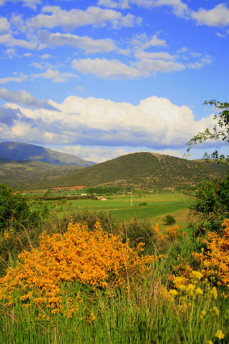 La llanura tiene colores más claros: verdes en la primavera, amarillos en verano, cuando los cultivos ya están preparados para la cosecha, y marrones en otoño e invierno.
