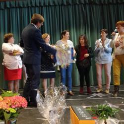 A las 13:30 horas tuvo lugar la entrega de premios. La ganadora fue obsequiada con 100 euros y la segunda clasificada con 50 euros. Además, la ganadora de la pasada edición mostró a todo el público su trabajo finalizado.