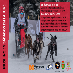 Este sábado 19 de mayo a partir de las 16:00 horas, el actual subcampeón de España de mushing Jorge García, dará una clase de demostración en el campo de fútbol de arena. Galería de Imágenes Comparte esta Página