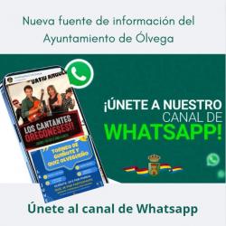 El Ayuntamiento de Ólvega pone a disposición de todos un nuevo canal de Whatsapp, en el cual podrán disponer de toda la información que vaya aconteciendo en nuestro municipio. ¡¡Unete a nuestro nuevo canal!! Galería de Imágenes Comparte esta Página
